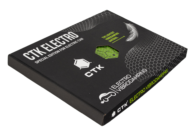 CTK Electro es un material ligero y sumamente eficaz para coches eléctricos. Su innovadora fórmula compuesta de caucho butílico y una lámina de 100 micras proporciona ligereza al material sin sacrificar rigidez ni eficiencia debido a su espesor. Este material insonorizante es fácil de aplicar, ya que no requiere calentamiento. Su bajo peso y amplia gama de aplicaciones permiten su uso en coches de tracción eléctrica.